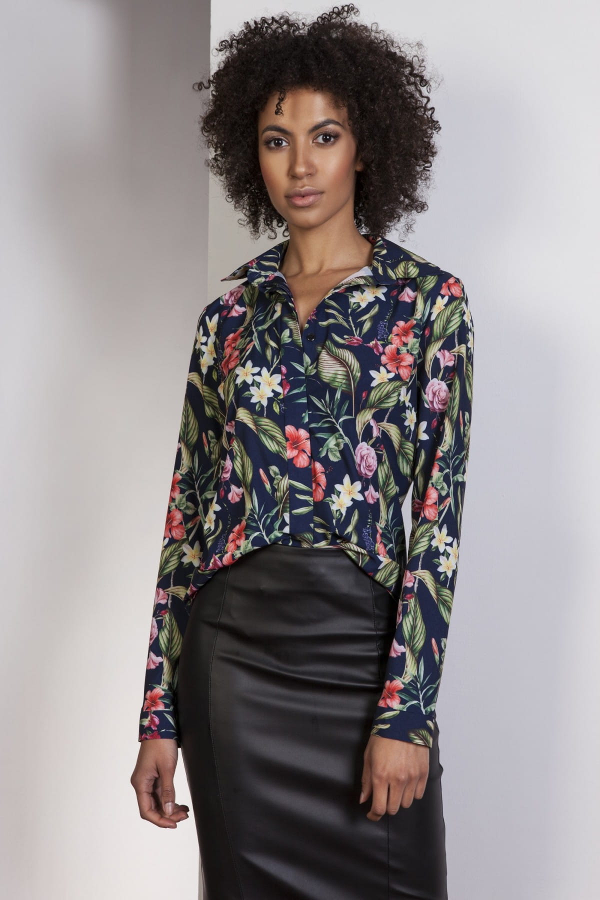 ołówkowa spódnica z ekoskóry z ozdobnym ekspresem z tyłu
